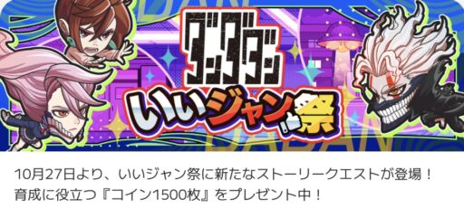2025/10/22〜10/31 リリース1ヶ月記念キャンペーン(コインクエスト100%増加)